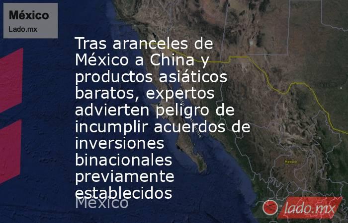 Si bien China encontró una solución enviando sus mercancías primero a Vietnam para ahí aprovechar otras políticas arancelarias bajo el Tratado Integral y Progresista de Asociación Transpacífico (TIPAT), preocupa el hecho de que México al imponer estas tarifas pueda violar Acuerdos de Promoción y Protección Recíproca de las Inversiones (APPRIs) que sostiene con el mercado chino.