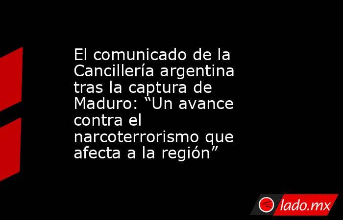 A través de un comunicado de la Cancillería Argentina, el Gobierno manifestó su apoyo a las acciones recientes adoptadas por Estados Unidos en Venezuela, que resultaron en la captura de Nicolás Maduro, calificado como dictador y líder del denominado Cártel de los Soles.