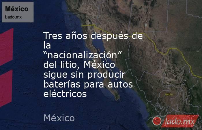 El próximo 18 de febrero se cumplirán tres años de que el entonces presidente Andrés Manuel López Obrador firmó en Sonora el decreto por el que llegaría la “nacionalización” del litio, una acción anunciada desde meses atrás, bajo la promesa de ser el punto de partida para la industria de autos eléctricos en el país. Las intenciones expuestas con fuerza desde el Gobierno Federal fueron que el litio se reservaría para aprovechamiento del Estado, en miras de que la riqueza que esta industria pudiese generar se quedara en México, principalmente por la producción de baterías para la fabricación automotriz. Pero el tiempo ha pasado y nada se ha materializado . La problemática radica en que la industria automotriz sigue avanzando y, con ello, los planes de negocio se definen a largo plazo, sobre todo en proveeduría. Hasta ahora, México no está en el mapa .