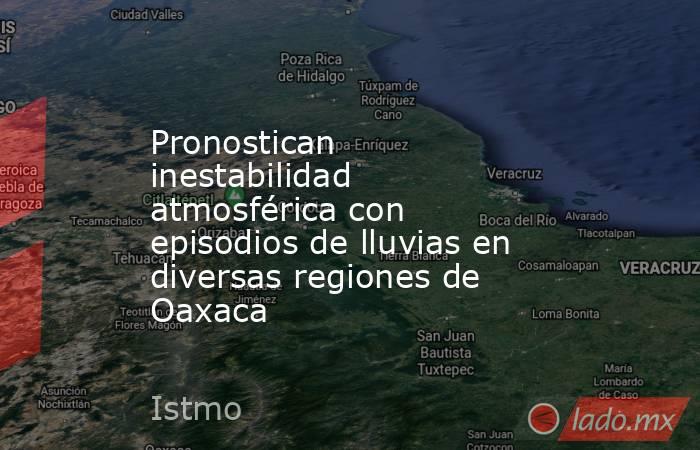 La Coordinación Estatal de Protección Civil y Gestión de Riesgos (CEPCyGR) informa que la tarde de este lunes se pronostica inestabilidad atmosférica con episodios de lluvias en la Cuenca del Papaloapan, norte del Istmo de Tehuantepec, Sierra de Flores Magón y Sierra de Juárez.