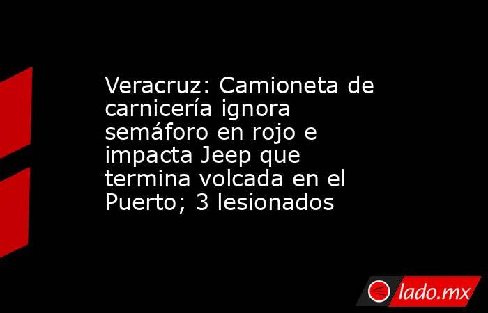- Camioneta Jeep Patriot terminó volcada, al ser impactada por otra camioneta propiedad de una carnicería, cuyo conductor se pasó el semáforo en rojo, la tarde de este viernes 2 de enero, en la esquina de las calles Pagés y Uribe, en el centro del Puerto de Veracruz.