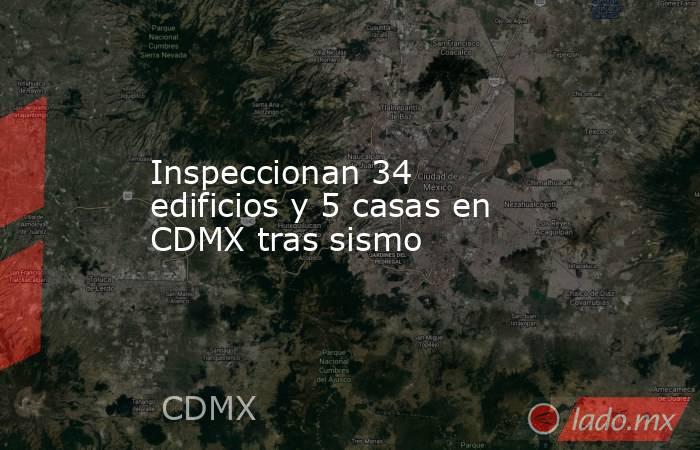Tras el sismo magnitud 6.5 con epicentro en Guerrero, en la Capital del País se realiza la inspección a 34 edificios y 5 casas habitación, indicó el Gobierno capitalino.