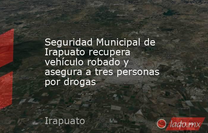 Irapuato, Gto .– Como resultado de los patrullajes preventivos, el uso de tecnología y los operativos de vigilancia, la Secretaría de Seguridad Ciudadana Municipal de Irapuato logró la recuperación de un vehículo con reporte de robo y el aseguramiento de tres personas por la probable comisión de delitos contra la salud y otros actos delictivos.
