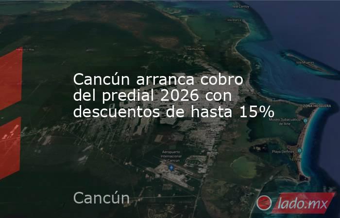 - El Ayuntamiento de Benito Juárez, a través de la Dirección de Ingresos, dio inicio al cobro del impuesto predial correspondiente al ejercicio fiscal 2026, ofreciendo una serie de descuentos escalonados que beneficiarán la […]The post Cancún arranca cobro del predial 2026 con descuentos de hasta 15% appeared first on Quintana Roo Hoy.