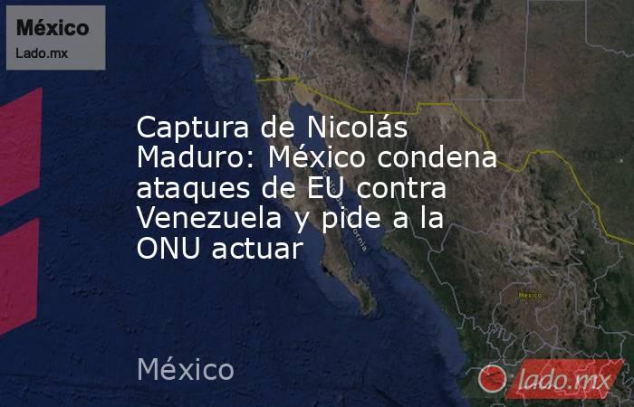 México rechazó este sábado “enérgicamente” el ataque militar de Estados Unidos contra Venezuela, con acciones en Caracas y otras ciudades del país, y en el que fueron capturados Nicolás Maduro y su esposa, Cilia Flores, a la vez que urgió a Naciones Unidas a “actuar inmediatamente”