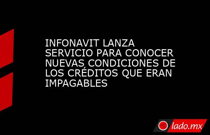 INFONAVIT LANZA SERVICIO PARA CONOCER NUEVAS CONDICIONES DE LOS CRÉDITOS QUE ERAN IMPAGABLES Los cerca de 4.
