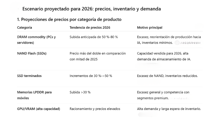 Los analistas coinciden en que la memoria representará una proporción cada vez mayor del costo total de los equipos (BOM). Para los revendedores e integradores en México, esto se traduce en incrementos acumulados que ya no pueden absorberse internamente.