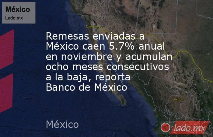 Con este resultado, las remesas ligaron ocho meses consecutivos de descensos a tasa anual. Durante noviembre, el número de transacciones, provenientes casi en su totalidad de Estados Unidos, disminuyó 7.9%, al contabilizar 12.6 millones de operaciones.