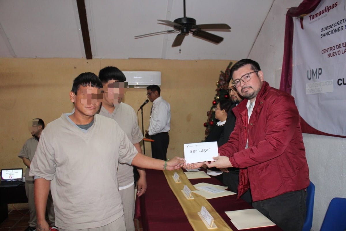 Nuevo Laredo, Tamaulipas.- El Centro de Ejecución de Sanciones (CEDES) del municipio de Nuevo Laredo entregó reconocimientos a las personas privadas de la libertad (PPLs) que participaron en un concurso interno de artes visuales y premios económicos a quienes obtuvieron los primeros lugares.