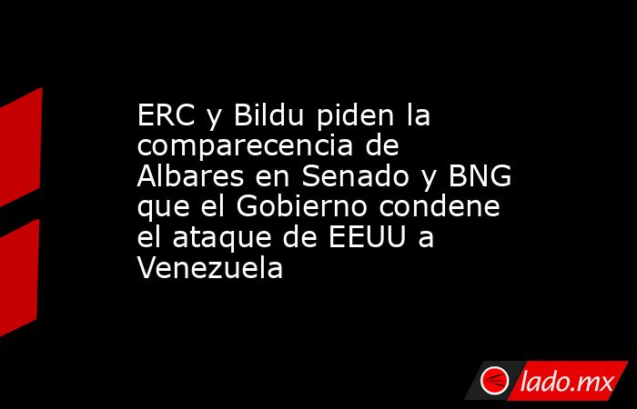 El Grupo Parlamentario Izquierdas por la Independencia en el Senado, compuesto por ERC y Bildu, a instancia del senador Gorka Elejabarrieta Díaz, ha solicitado este sábado la comparecencia del ministro de Asuntos Exteriores, Unión Europea y Cooperación, Albares, ante la Comisión de Asuntos Exteriores para informar en relación con la "agresión por parte del Gobierno de los Estados Unidos de América contra la República Bolivariana de Venezuela".