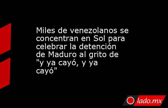 Miles de venezolanos --3.000 según Delegación del Gobierno en Madrid-- se han concentrado este sábado durante varias horas en la madrileña Puerta del Sol para celebrar el arresto del presidente de Venezuela, Nicolás Maduro, por parte de Estados Unidos.