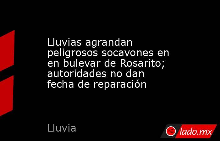 Rosarito, BC.-Las lluvias han acelerado el tamaño de los socavones que aparecieron sobre el bulevar Benito Juárez en Rosarito, uno de ellos, en el cruce de este bulevar con el Hisense y el otro a la altura de la colonia Machado Sur, sin que hasta ahora haya una fecha para su reparación.