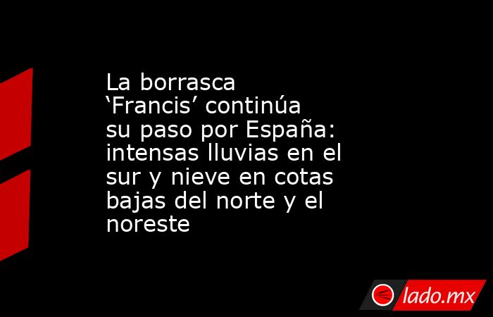 Las precipitaciones intensas y las nevadas en cotas bajas marcarán la jornada de este domingo en la Península, consecuencia directa de la borrasca ‘Francis’, que se ha situado entre el Estrecho y el oeste de Alborán. Este sistema atlántico ha generado una situación de inestabilidad meteorológica importante, con lluvias destacadas en las áreas del golfo de Cádiz y en el sur peninsular, así como acumulaciones de nieve a altitudes poco habituales para la época.