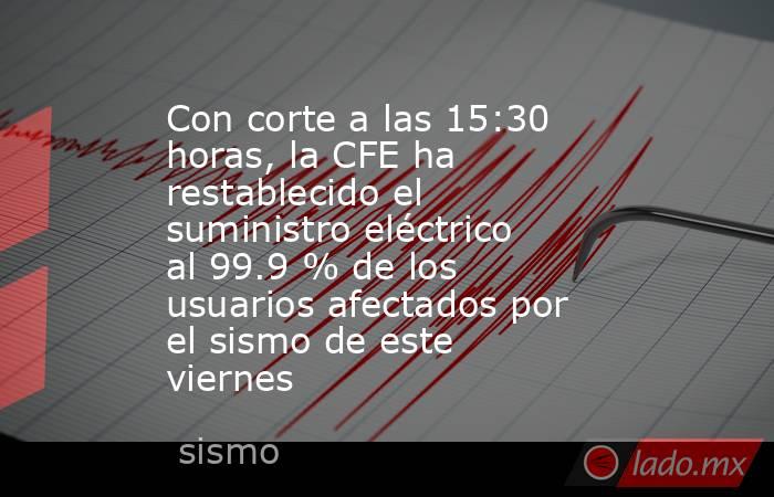 The post Con corte a las 15:30 horas, la CFE ha restablecido el suministro eléctrico al 99.9 % de los usuarios afectados por el sismo de este viernes appeared first on Almomento | Noticias, información nacional e internacional.