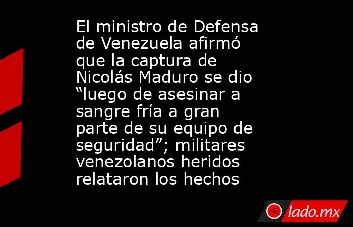 CIUDAD DE MÉXICO.- El ministro de Defensa de Venezuela, Vladimir Padrino López, afirmó que fuerzas de Estados Unidos realizaron un ataque armado en Caracas el pasado 3 de enero, durante el cual murió parte del equipo de seguridad del presidente Nicolás Maduro.