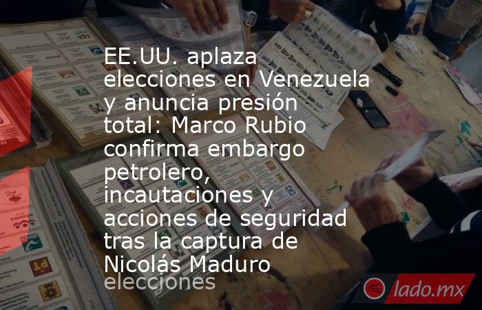 Estados Unidos no contempla, por ahora, un calendario electoral para Venezuela. Así lo afirmó el secretario de Estado, Marco Rubio, quien confirmó que Washington mantendrá el embargo petrolero, las incautaciones de barcos y otras medidas de presión tras la captura del presidente Nicolás Maduro, en medio de una ofensiva que Caracas califica como una agresión militar, según RT.