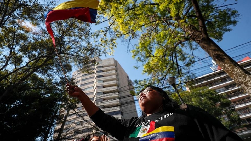 Ciudad de México, 04 de enero 2026 (LATINUS/entresemana.mx). Venezolanos residentes en México se movilizaron este domingo por las principales avenidas de la Ciudad de México para exigir una transición política y pacífica en Venezuela tras la intervención militar de Estados Unidos, así como para celebrar el fin de un periodo «de mucho horror» y el primer paso hacia la libertad de su país natal.