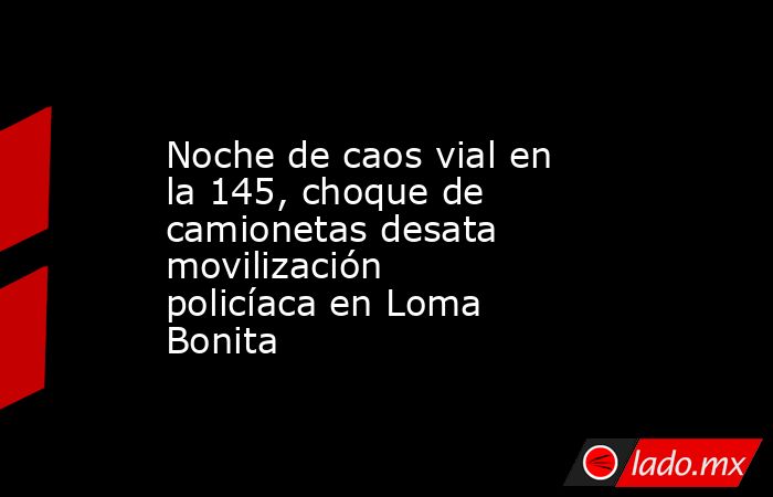 - La noche de este lunes 5 de enero se registró un percance de tránsito en la carretera federal 145, tramo Loma Bonita–Tuxtepec, a la altura del entronque al panteón municipal de Loma Bonita, con resultado de afectaciones materiales tras la colisión entre dos camionetas, no se reportaron personas con lesiones.