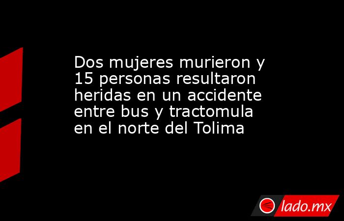 Un accidente de tránsito se registró en la tarde de este martes 6 de enero de 2026 en la vía que comunica a los municipios de Armero Guayabal y San Sebastián de Mariquita, en el norte del Tolima, donde un bus de transporte público y una tractomula colisionaron de manera frontal. El siniestro dejó como saldo dos mujeres fallecidas y 15 personas lesionadas, según confirmaron las autoridades.