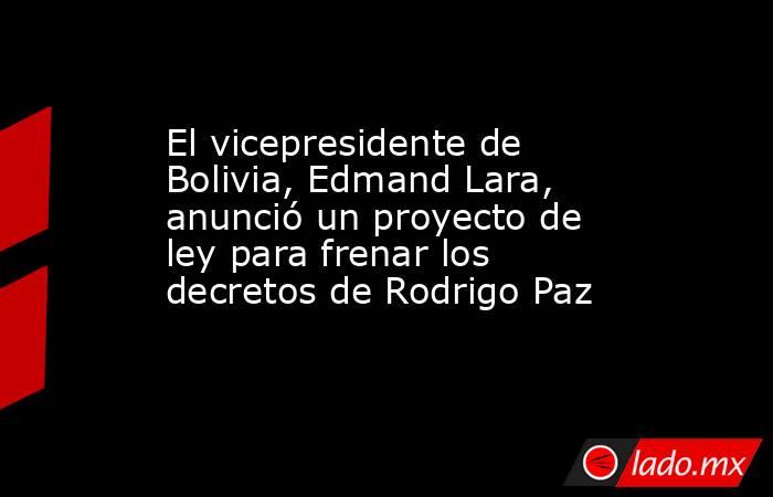 Edmand Lara, vicepresidente de Bolivia, continúa siendo un dolor de cabeza para el titular del Ejecutivo y, en esta ocasión, anunció que presentará un proyecto de ley para frenar los decretos emitidos por el presidente Rodrigo Paz que considera “inconstitucionales”, entre ellos el que eliminó la subvención a los combustibles vigente por más de veinte años.