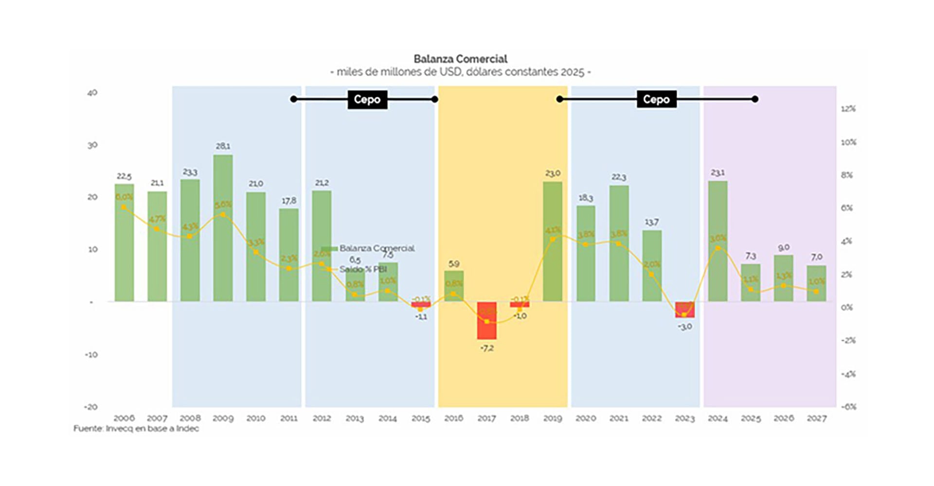 “Para 2026 proyectamos un saldo comercial en niveles similares a los de 2025. Las exportaciones continuarían creciendo, nuevamente lideradas por el agro y por el sector energético”