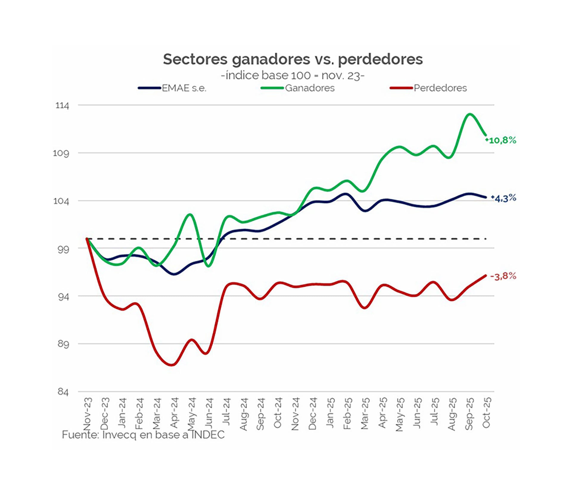 El retorno del crédito, estancado desde octubre, va a ser algo relevante para el sector financiero y los sectores que se nutren de que la sociedad adquiera bienes con financiamiento. Esperamos que la construcción va a estar algo mejor que en 2025, aunque no en los niveles de 2023. Algo de economías regionales que vienen marcando récords y probablemente la economía de los servicios basados en el conocimiento, que alcanzó un récord reciente, siga en esos niveles.