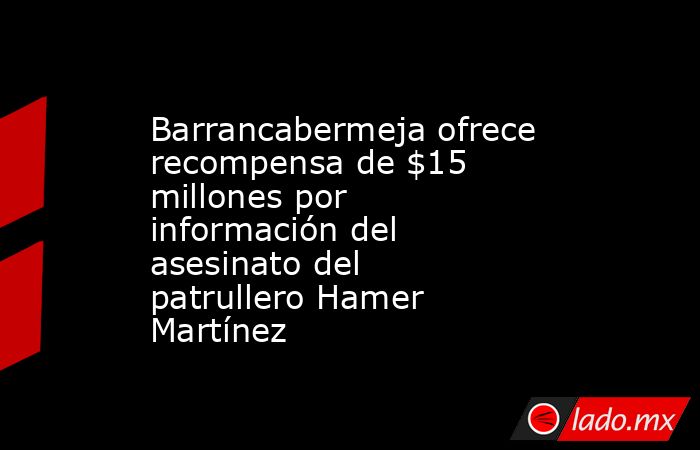 El distrito especial de Barrancabermeja anunció una recompensa de hasta $15 millones de pesos para quienes brinden información que permita capturar a los responsables del asesinato del patrullero Hamer Guisseppe Martínez Sarmiento. El hecho ocurrió en la comuna tres de la ciudad, mientras el uniformado se encontraba en su periodo de descanso.