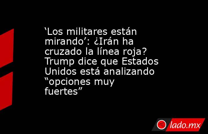 El presidente estadounidense, Donald Trump, dijo el domingo que el ejército estadounidense estaba estudiando “opciones muy fuertes” para una posible acción militar contra Irán, en medio de informes de una represión mortal contra las crecientes protestas antigubernamentales en el país.En declaraciones a los periodistas a bordo del Air Force One, Trump sugirió que Irán podría haber cruzado la línea roja que había establecido previamente con respecto al asesinato de manifestantes.
