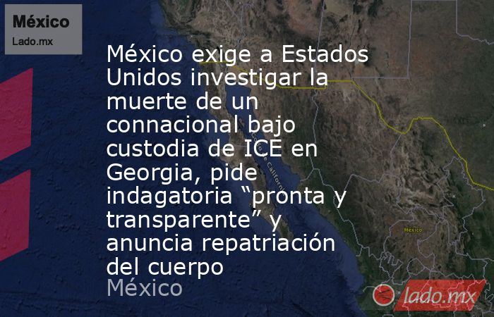 El Gobierno de México solicitó formalmente a las autoridades de Estados Unidos que esclarezcan el fallecimiento de un inmigrante mexicano ocurrido hace dos días en un centro de detención del Servicio de Inmigración y Control de Aduanas (ICE) en el estado de Georgia.