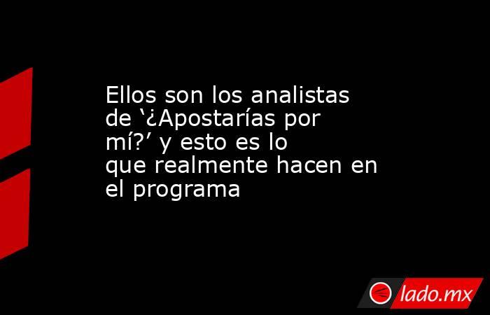 Ciudad de México, México.- El reality show ¿Apostarías por mí? tendrá un panel de analistas que tienen un papel estratégico a cada decisión que se tome dentro de la competencia.