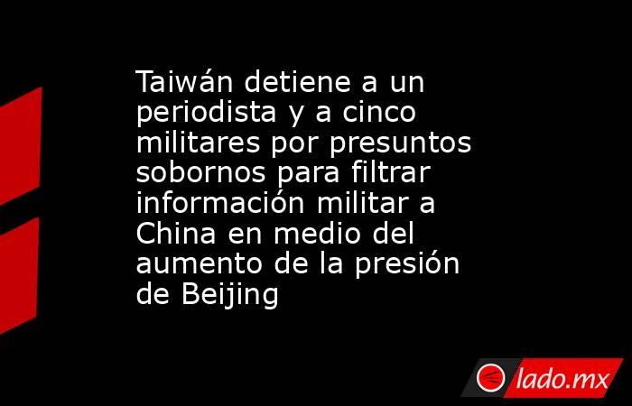 TAIPÉI.- Un periodista de televisión en Taiwán fue detenido junto con varios miembros del ejército, activos y retirados, bajo acusaciones de haber sobornado a personal militar para obtener y filtrar información confidencial a personas de China continental.