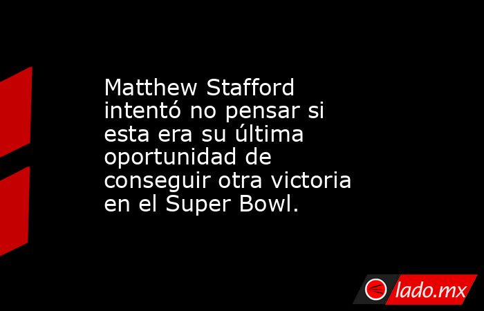 El mayor objetivo es ganar el Super Bowl. A Stafford y los Rams les quedan dos juegos.