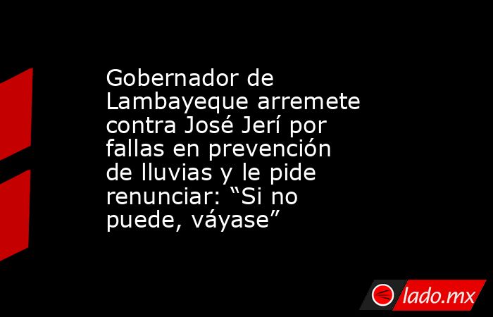El gobernador regional de Lambayeque, Jorge Pérez, criticó este lunes al presidente interino José Jerí por la ausencia de obras de prevención y la exclusión de 24 distritos de la zona norte en la declaratoria de emergencia por lluvias.