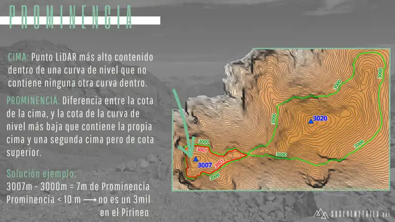 000 m de altitud con una prominencia de entre 8 y 12 m, en las que se realizaron mediciones topográficas más precisas, esto es, centimétricas, para garantizar si entran o no en nuestra lista.