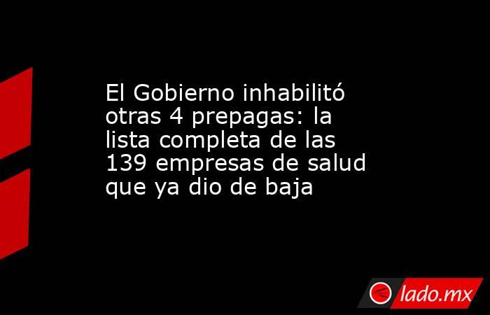 El Gobierno dio de baja otras 4 empresas de medicina prepaga y suman 139 las entidades que perdieron su actividad durante la actual administración. Una resolución de la Superintendencia de Servicios de Salud publicada hoy en el Boletín Oficial dispuso “la baja del registro provisorio otorgado” para 4 prepagas: Mutual del Sanatorio Garay, Mutual de la Asociación Gremial de Empleados de Comercio de Córdoba, Plan Odontológico Integral y Cámara de Tabaco de Misiones.