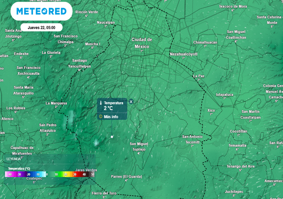 5 °C en Topilejo, ambas localidades de Tlalpan.