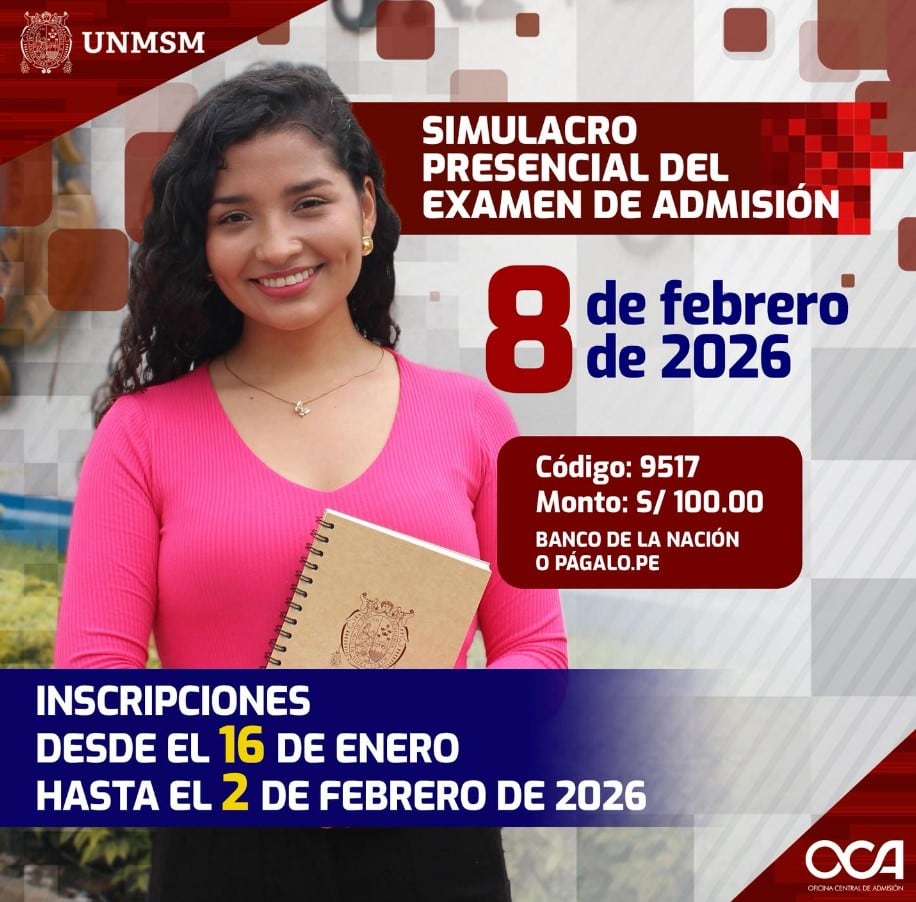 La Universidad Nacional Mayor de San Marcos (UNMSM) anunció la realización de un simulacro presencial de admisión como parte de la preparación para el examen 2026-II, programado para marzo.