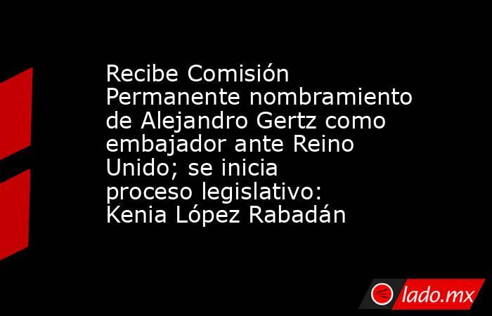 El cargo Recibe Comisión Permanente nombramiento de Alejandro Gertz como embajador ante Reino Unido; se inicia proceso legislativo: Kenia López Rabadán apareció primero en El Arsenal.