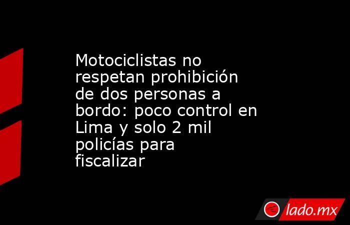 Desde hoy entra en vigencia la norma que obliga a los ciudadanos en zonas declaradas en emergencia a no tener pasajeros al transportarse en sus motocicletas, con la posibilidad de ser multados hasta con S/ 1,320 en caso de reincidencia. Sin embargo, los conductores en Lima y Callao mantienen su hábito de transportar al menos a una persona en sus vehículos.
