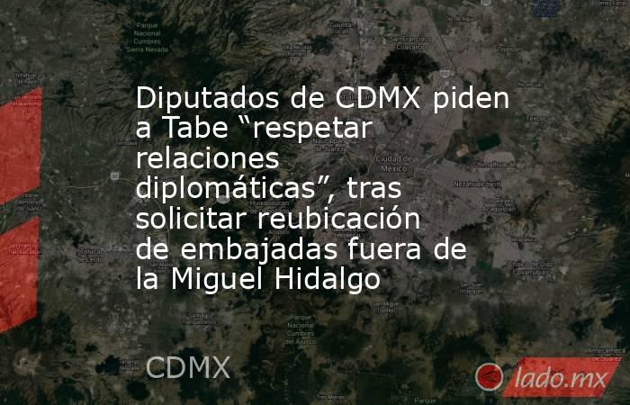 La propuesta del alcalde de Miguel Hidalgo, Mauricio Tabe Echeartea, de impulsar la reubicación de las embajadas de Venezuela, Cuba y Nicaragua fuera de la demarcación que gobierna, fue discutida en el Congreso de la Ciudad de México mediante una proposición con punto de acuerdo de urgente y obvia resolución.