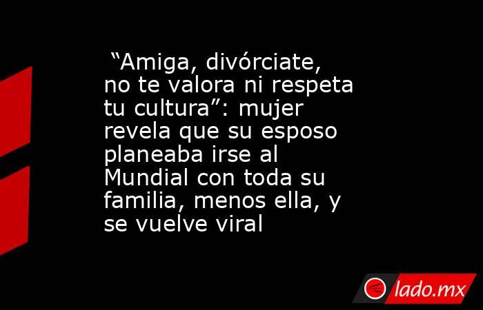 “Amiga, divórciate, no te valora ni respeta tu cultura”: mujer revela que su esposo planeaba irse al Mundial con toda su familia, menos ella, y se vuelve viral