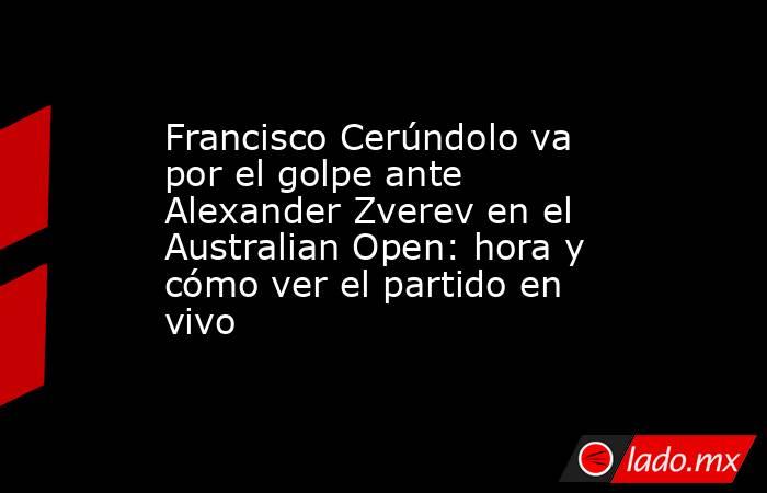 Comienza la segunda semana del primer Grand Slam de la temporada, el Australian Open, con la presencia de Francisco Cerúndolo, que enfrentará al alemán Alexander Zverev por los octavos de final. El partido se podrá ver por ESPN y a través de la plataforma de streaming Disney Plus: el encuentro está previsto para la madrugada de este domingo 25 de enero en el cuarto turno de la cancha John Cain Arena, no antes de las 3:00 de la mañana (hora argentina).