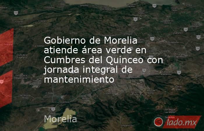 – El Gobierno de Morelia, a través de su Secretaría de Servicios Públicos Municipales, llevó a cabo este sábado una amplia jornada integral de limpieza y mantenimiento en una extensa área verde de la colonia Cumbres del Quinceo al norponiente de la ciudad, según un comunicado.