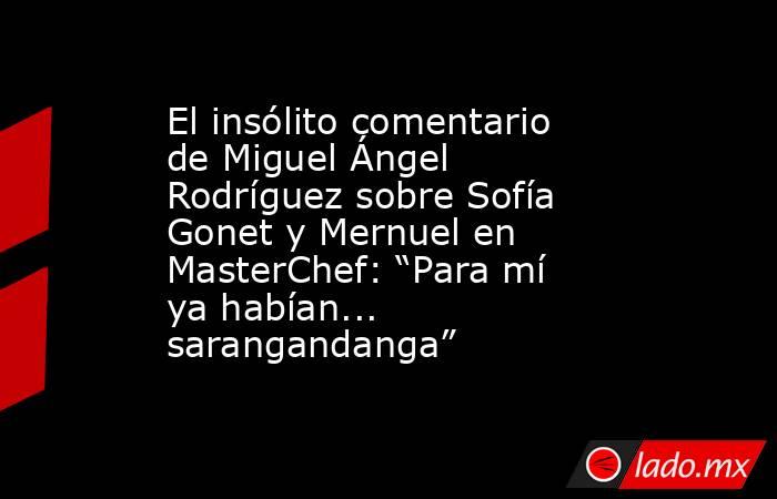El sábado, en la edición especial de la competencia, en medio de un ambiente distendido, varios participantes se reunieron en torno a una charla relajada. Entre ellos se encontraban Sofía Gonet, Cachete Sierra y La Joaqui. La conversación giró rápidamente hacia los vínculos entre los concursantes. Rodríguez, con su tono característico, lanzó una frase sugestiva sobre Sofía y Mernuel, acompañada de un gesto con la mano, afirmando: “Para mí ya habían... Sarangandanga”.