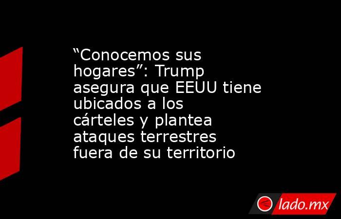 Conocemos sus rutas. Lo sabemos todo sobre ellos. Conocemos sus hogares…” y enfatizó que buscarán atacar a los cárteles en tierra firme.
