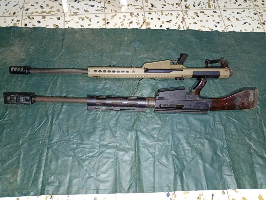 En el sitio fueron aseguradas 14 armas de fuego largas, entre ellas dos fusiles calibre .50 milímetros, considerados de uso exclusivo de las Fuerzas Armadas, así como 148 cargadores, cartuchos de diversos calibres y tres vehículos presuntamente vinculados a actividades ilícitas.