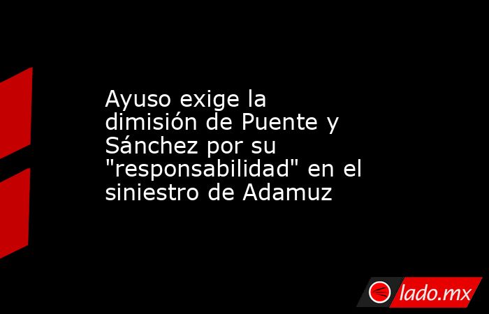 La presidenta de la Comunidad de Madrid, Isabel Díaz Ayuso, ha exigido este lunes la dimisión del presidente del Gobierno, Pedro Sánchez, y del ministro de Transportes, Óscar Puente, tras el accidente de tren en Adamuz (Córdoba), que ha dejado más de 40 fallecidos, por su "responsabilidad" en el mismo.