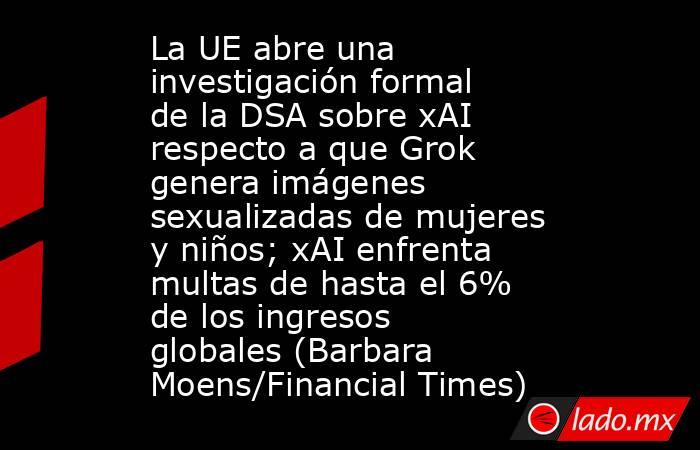 La UE abre una investigación formal de la DSA sobre xAI respecto a que Grok genera imágenes sexualizadas de mujeres y niños; xAI enfrenta multas de hasta el 6% de los ingresos globales — Los reguladores europeos inician una investigación sobre la creación y difusión de imágenes sexualizadas de mujeres y niños.