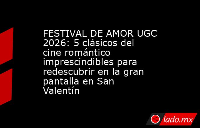 FESTIVAL DE AMOR UGC 2026: 5 clásicos del cine romántico imprescindibles para redescubrir en la gran pantalla en San Valentín. Noticias en tiempo real 26 de Enero, 2026 10:59