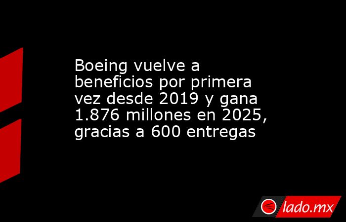Boeing registró un beneficio neto de 2.238 millones de dólares (1.876 millones de euros) en 2025, frente a las pérdidas de 11.829 millones de dólares (9.918 millones de euros) de un año antes, favorecido por las 600 entregas de aviones comerciales, su mejor resultado desde 2018, según un comunicado.